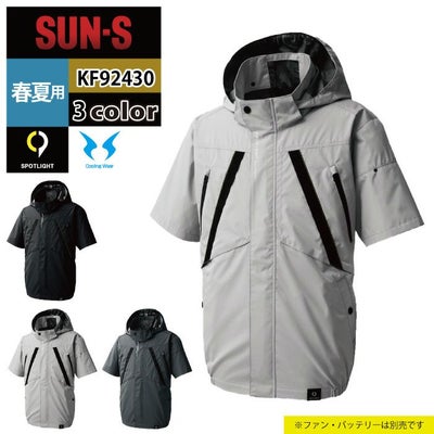 ファン付きウェア (服のみ) 春夏 サンエス 作業服 KF92430 チタン加工半袖ブルゾン M-3L 作業着