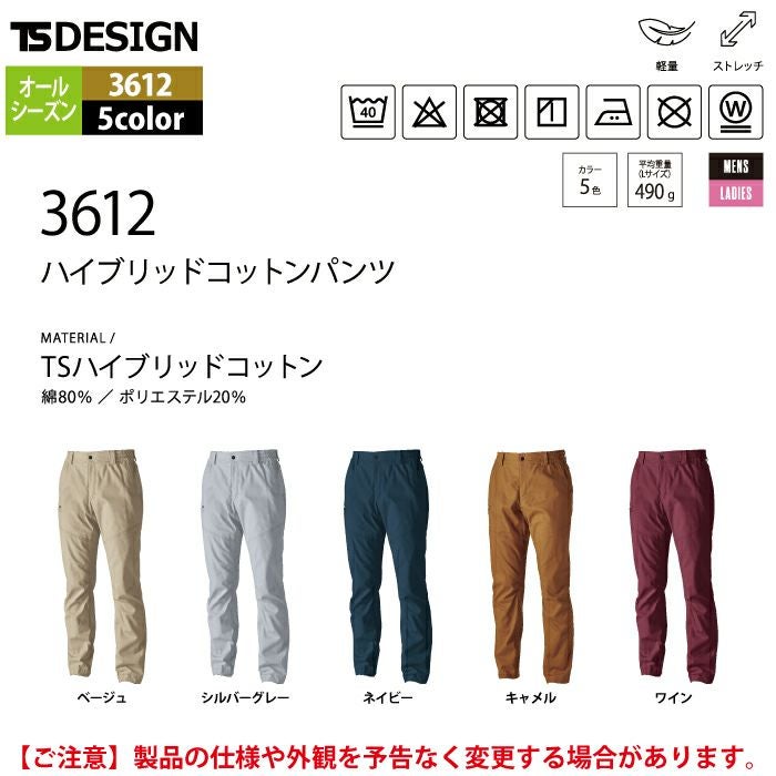 藤和 TSDESIGN 作業服 オールシーズン 3612 コットンパンツ SS-LL