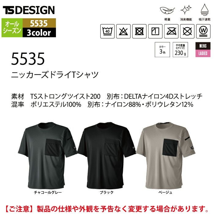 藤和 TSDESIGN 作業服 オールシーズン 5535 ニッカーズドライTシャツ 5L-6L