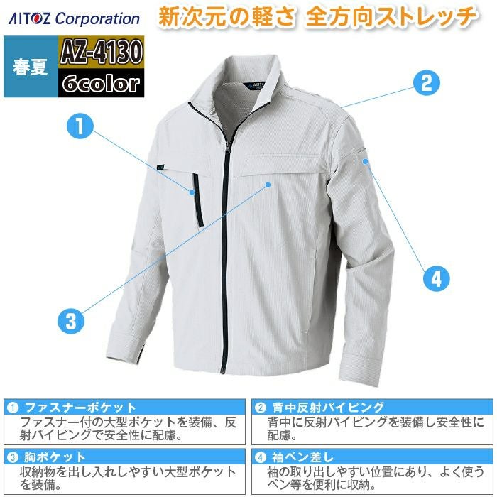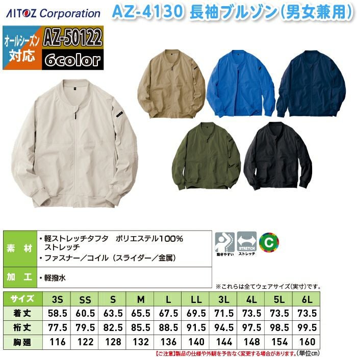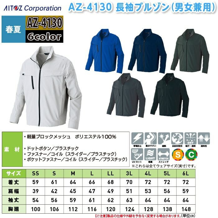 アイトス Aitoz 作業服 作業着 作業ズボン アイトス 作業服 作業着 Aitoz 春夏用 Aitoz AZ-4130 長袖ブルゾン(男女兼用) SS-LL