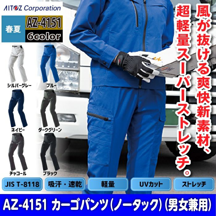 アイトス Aitoz 作業服 作業着 作業ズボン アイトス 作業服 作業着 Aitoz 春夏用 Aitoz AZ-4151 カーゴパンツ(ノータック)(男女兼用) 3L-4L