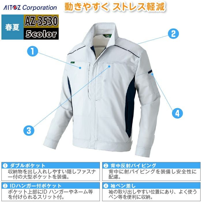アイトス Aitoz 作業服 作業着 作業ズボン アイトス 作業服 作業着 Aitoz 春夏用 Aitoz AZ-3530 長袖ブルゾン(男女兼用) 3L