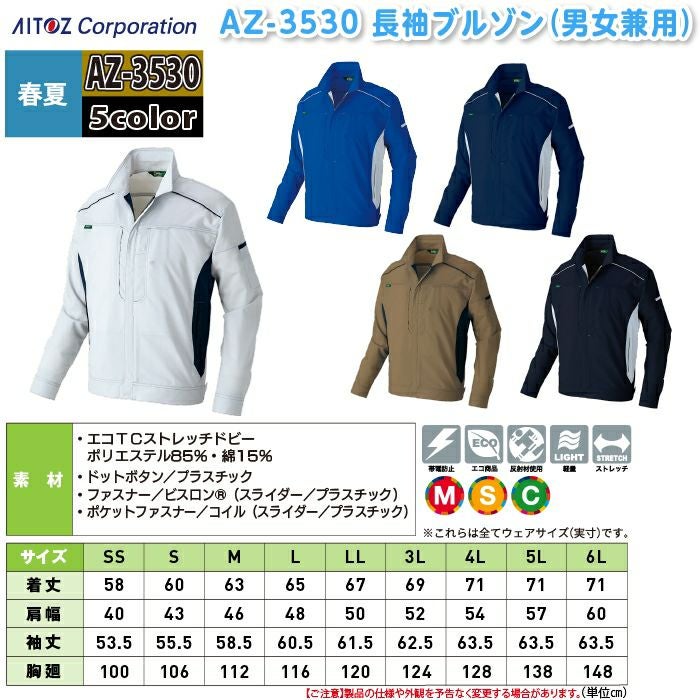アイトス Aitoz 作業服 作業着 作業ズボン アイトス 作業服 作業着 Aitoz 春夏用 Aitoz AZ-3530 長袖ブルゾン(男女兼用) 5L