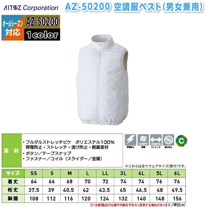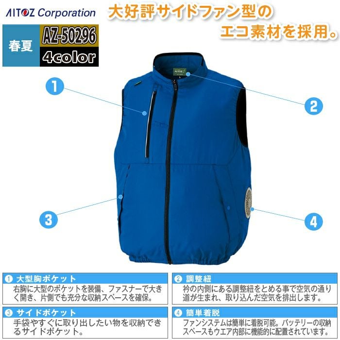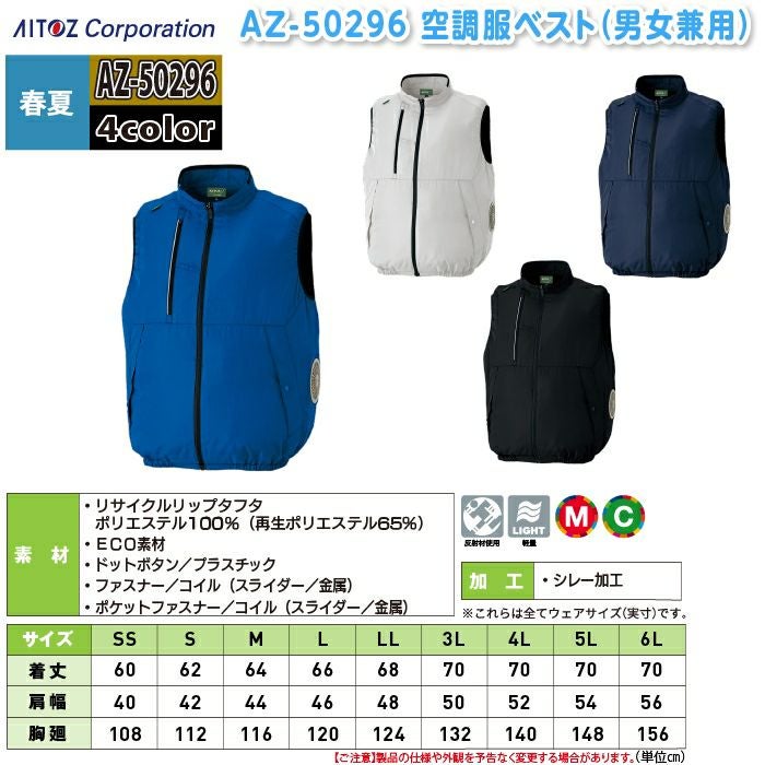 空調服 アイトス Aitoz 作業服 作業着 空調服 アイトス Aitoz AZ-50296 空調服ベスト(男女兼用) SS-LL 春夏用 熱中症 レジャー アウトドア スポーツ