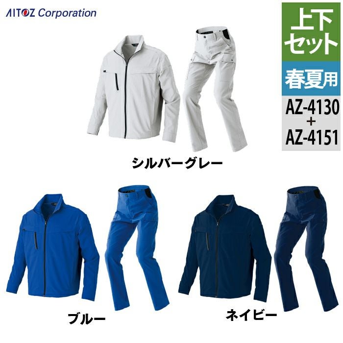アイトス Aitoz 作業服 作業着 作業ズボン アイトス 作業服 作業着 Aitoz 春夏用 Aitoz 上下セット AZ-4130 長袖ブルゾン(男女兼用)L-3L と AZ-4151 カーゴパンツ(ノータック)(男女兼用) 3S-3L