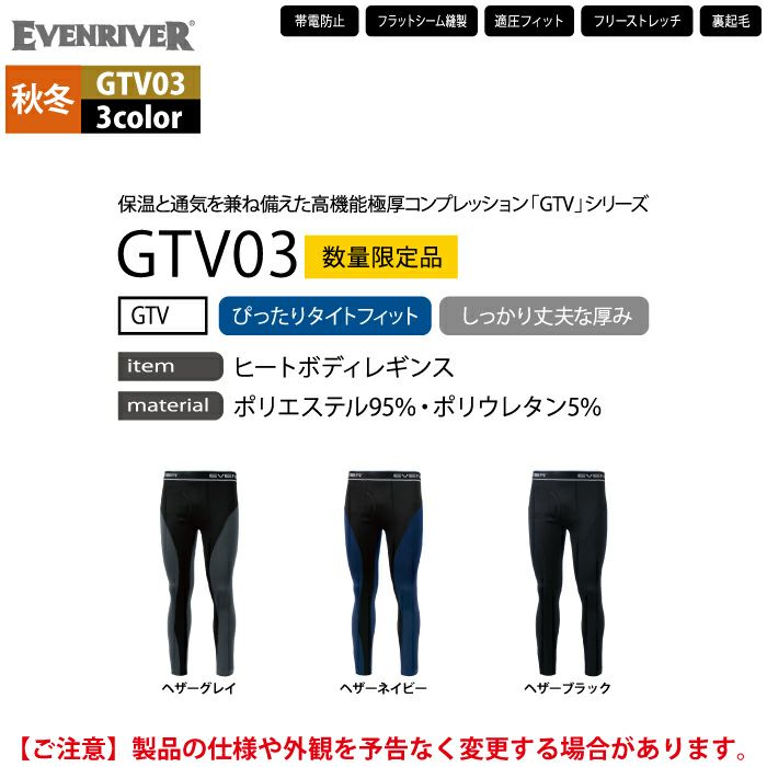 イーブンリバー EVENRIVER 作業服 インナー 2025秋冬新作 GTV03 ヒートボディレギンス M-5L 防寒 作業着 おしゃれ 保温