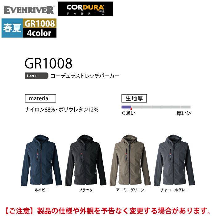イーブンリバー EVENRIVER 作業服 GR1008 コーデュラストレッチパーカー S-LL 春夏 作業着 おしゃれ 冷感