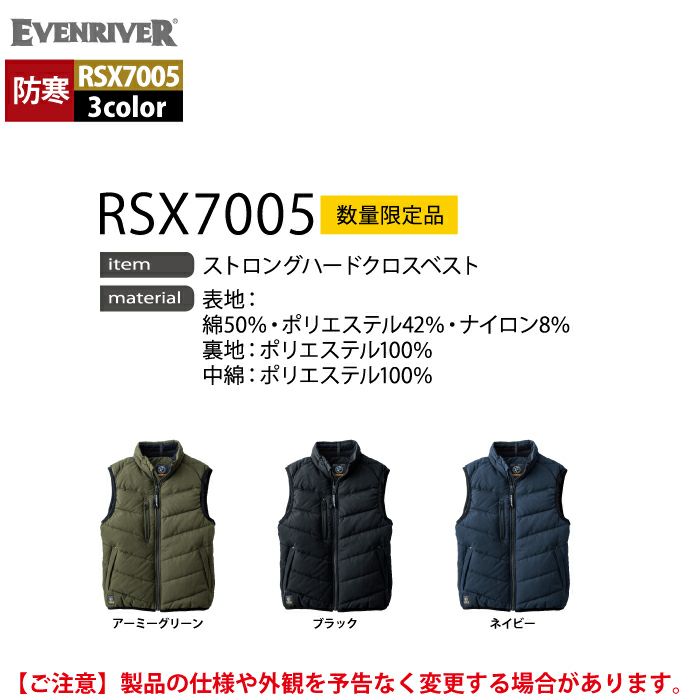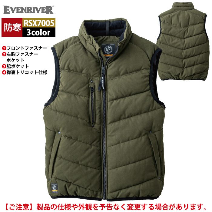 イーブンリバー EVENRIVER 作業服 防寒着 2025秋冬新作 RSX7005 ストロングハードクロスベスト M-5L 作業着 おしゃれ 保温