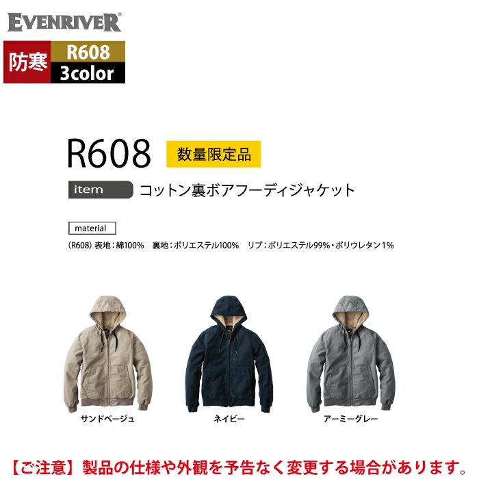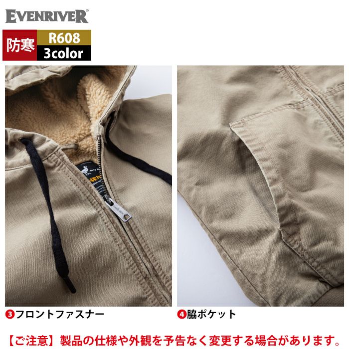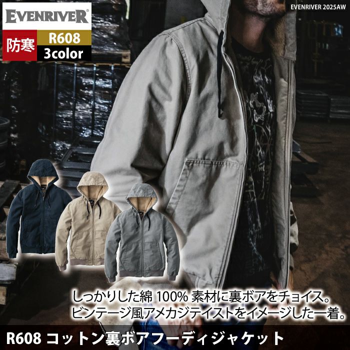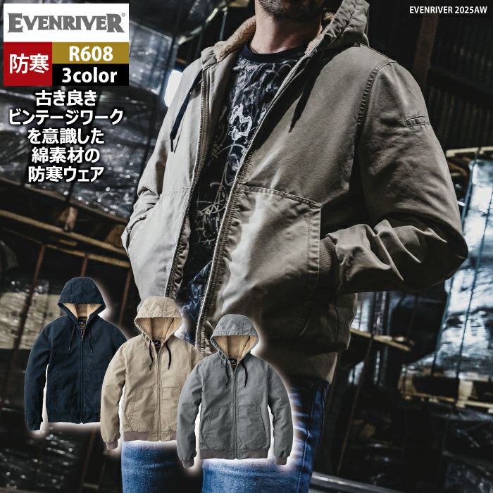 作業服 作業着 防寒着 イーブンリバー EVENRIVER 作業服 防寒着 2025秋冬新作 R608 コットン裏ボアフーディジャケット M-5L 作業着 おしゃれ 保温 綿100