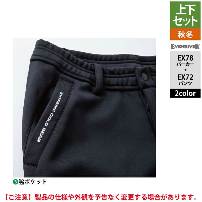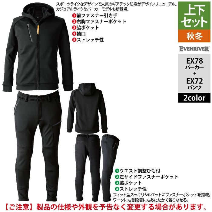 作業服 作業着 作業ズボン イーブンリバー EVENRIVER 防寒着 上下セット EX78 ギアテックパーカーS-3L と EX72 ギアテックパンツ SS-4L 作業服 作業着 作業ズボン 保温