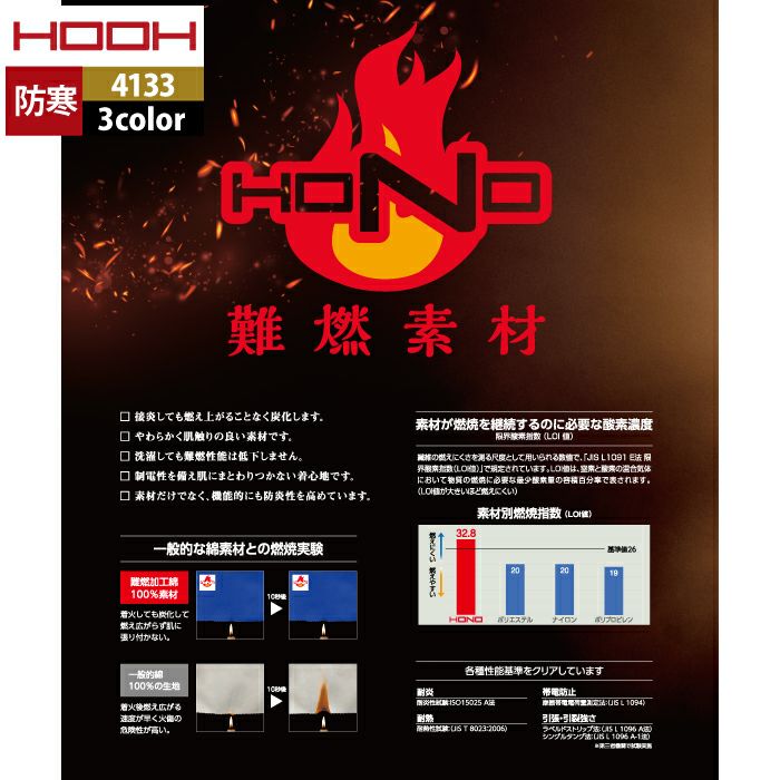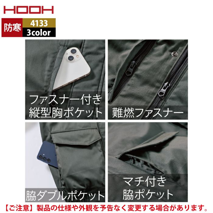 村上被服 HOOH 鳳凰 作業服 作業着 村上被服 HOOH 鳳凰 作業服 防寒着 4133 難燃軽防寒ブルゾン M-3L 秋冬 作業着 おしゃれ 難燃 耐熱 制電 保温