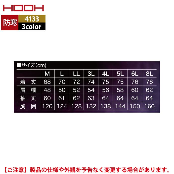 村上被服 HOOH 鳳凰 作業服 作業着 村上被服 HOOH 鳳凰 作業服 防寒着 4133 難燃軽防寒ブルゾン 4L-5L 秋冬 作業着 おしゃれ 難燃 耐熱 制電 保温