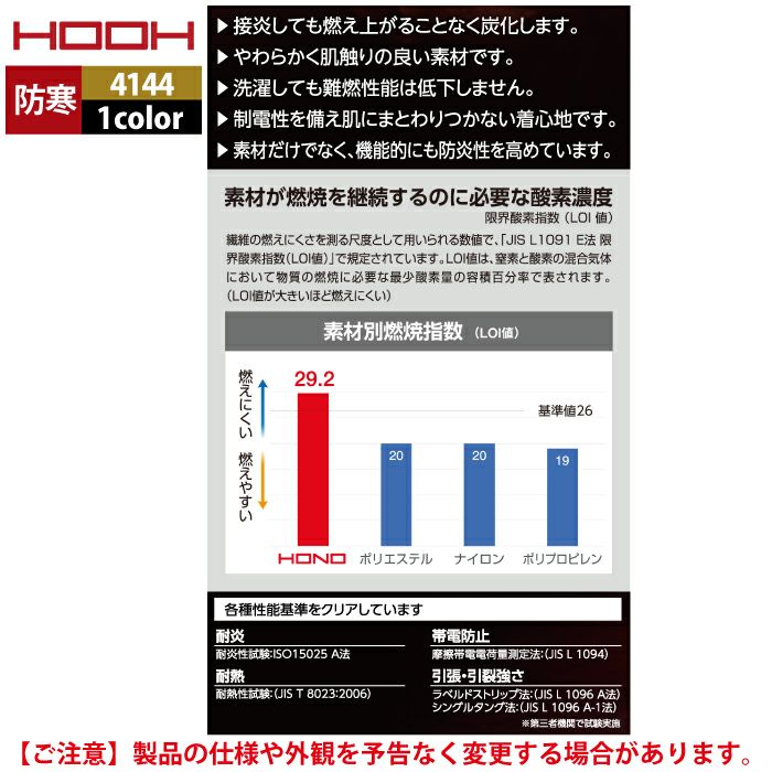 村上被服 HOOH 鳳凰 作業服 作業着 村上被服 HOOH 鳳凰 作業服 防寒着 4144 難燃軽防寒パンツ M-3L 秋冬 作業着 おしゃれ 難燃 耐熱 制電 保温