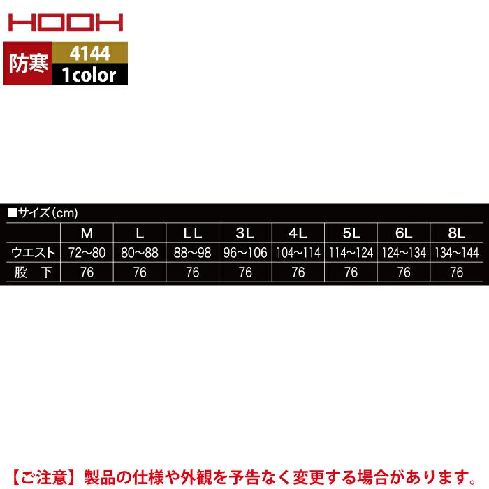 村上被服 HOOH 鳳凰 作業服 作業着 村上被服 HOOH 鳳凰 作業服 防寒着 4144 難燃軽防寒パンツ 6L 秋冬 作業着 おしゃれ 難燃 耐熱 制電 保温