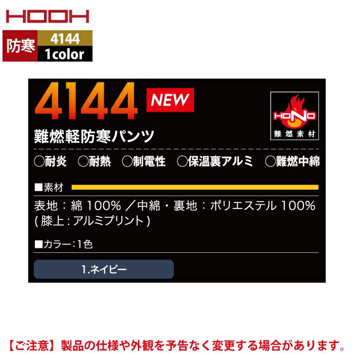 村上被服 HOOH 鳳凰 作業服 作業着 村上被服 HOOH 鳳凰 作業服 防寒着 4144 難燃軽防寒パンツ 4L-5L 秋冬 作業着 おしゃれ 難燃 耐熱 制電 保温