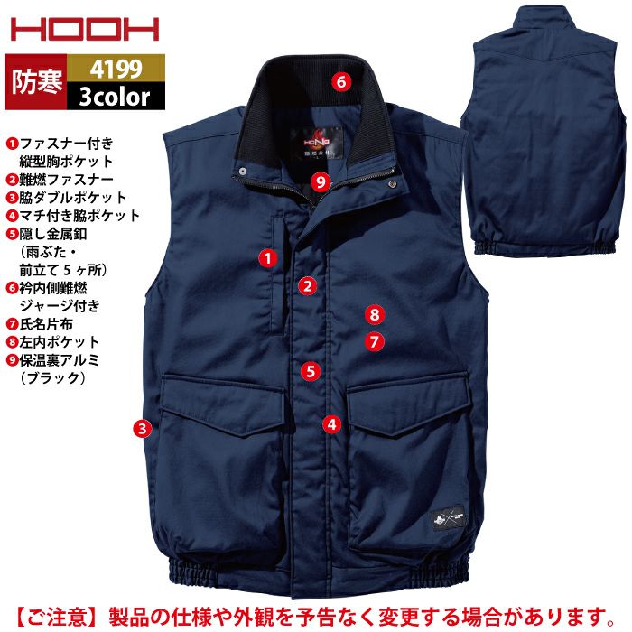 村上被服 HOOH 鳳凰 作業服 作業着 村上被服 HOOH 鳳凰 作業服 防寒着 4199 難燃軽防寒ベスト 4L-5L 秋冬 作業着 おしゃれ 難燃 耐熱 制電 保温