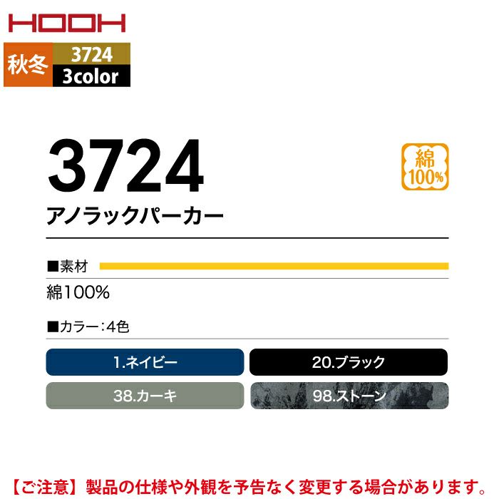 村上被服 HOOH 鳳凰 作業服 作業着 村上被服 HOOH 鳳凰 作業服 3724 アノラックパーカー S-3L 秋冬 作業着 おしゃれ 綿100 保温