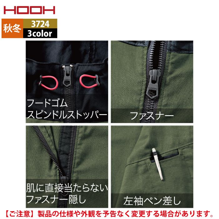 村上被服 HOOH 鳳凰 作業服 作業着 村上被服 HOOH 鳳凰 作業服 3724 アノラックパーカー 4L-5L 秋冬 作業着 おしゃれ 綿100 保温