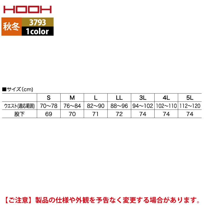 村上被服 HOOH 鳳凰 作業服 作業着 村上被服 HOOH 鳳凰 作業服 3793 ワイドジョガーパンツ S-3L 秋冬 作業着 おしゃれ 綿100 保温