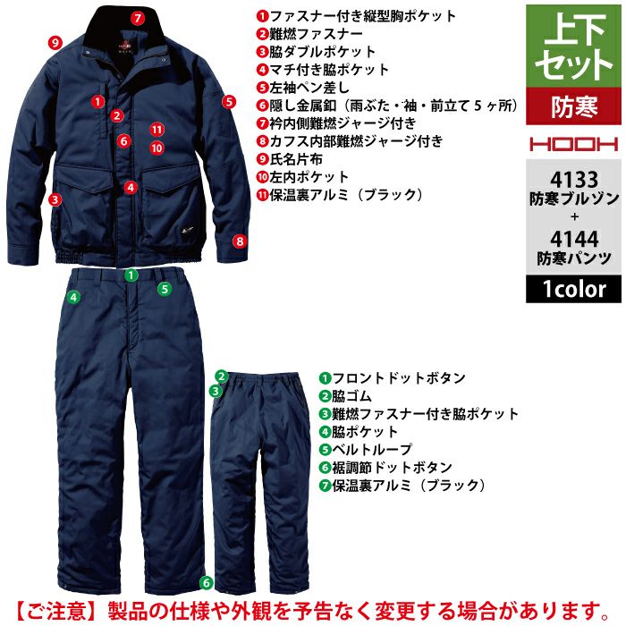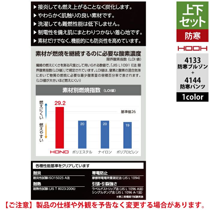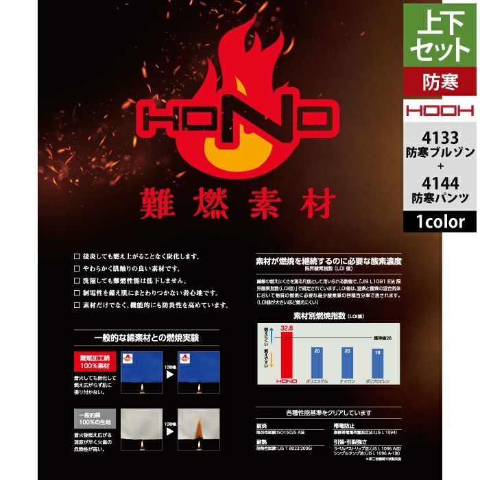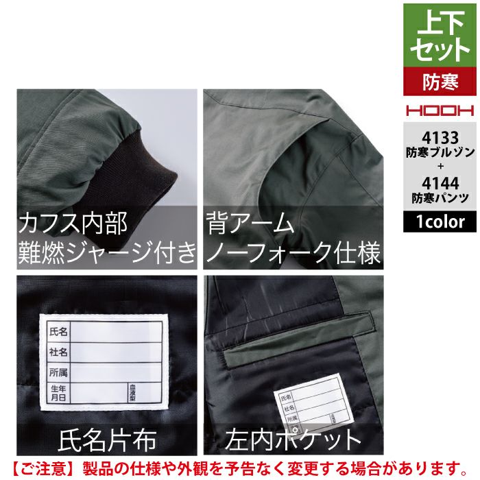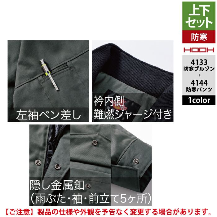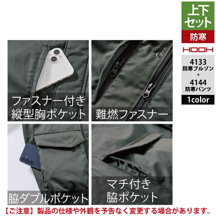 村上被服 HOOH 鳳凰 作業服 作業着 村上被服 HOOH 鳳凰 作業服 上下セット 4133 難燃軽防寒ブルゾンM-3L と 4144 難燃軽防寒パンツ M-3L 作業着 作業ズボン
