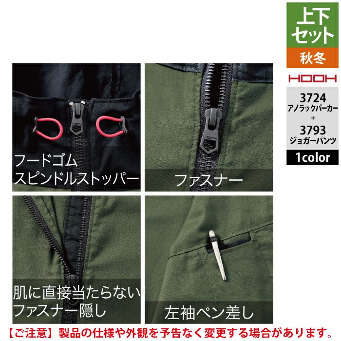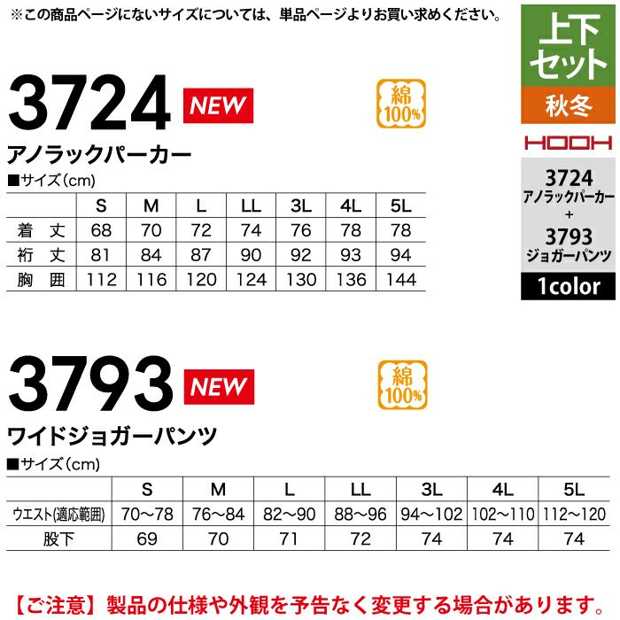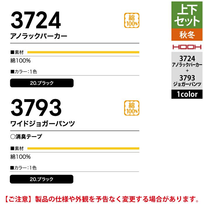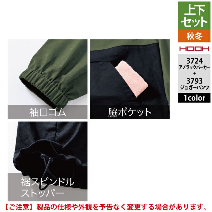 村上被服 HOOH 鳳凰 作業服 作業着 村上被服 HOOH 鳳凰 作業服 上下セット 3724 アノラックパーカーS-3L と 3793 ワイドジョガーパンツ S-3L 作業着 作業ズボン