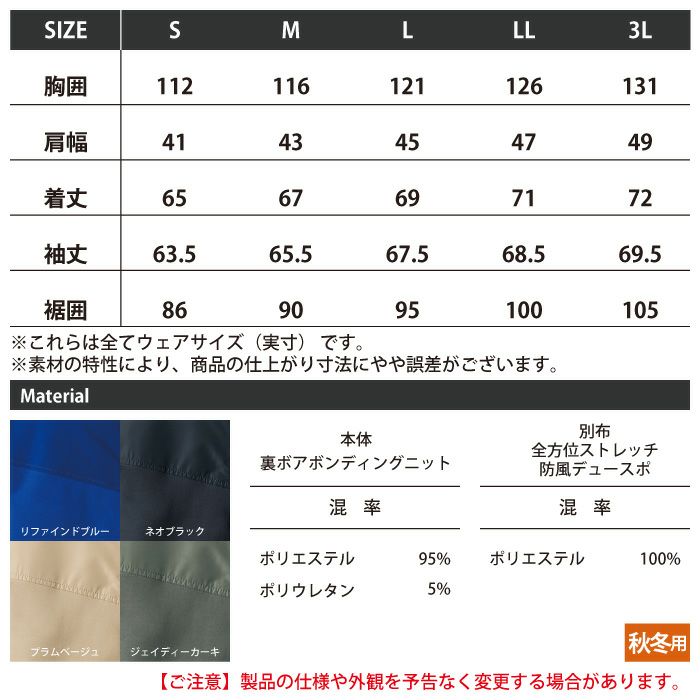 【8810 ハイブリッドストレッチ裏ボアパーカー】