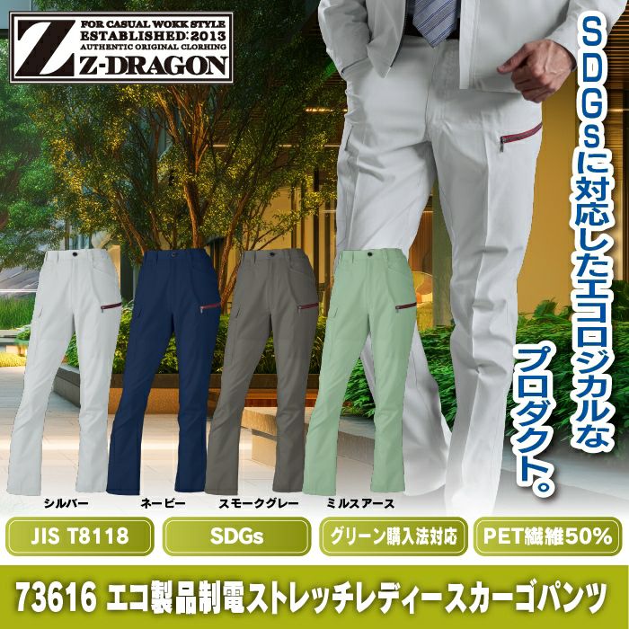 自重堂 作業服 作業着 自重堂 Z-DRAGON ジードラゴン 作業服 73616 エコ製品制電ストレッチレディースカーゴパンツ SS-LL 秋冬 作業着