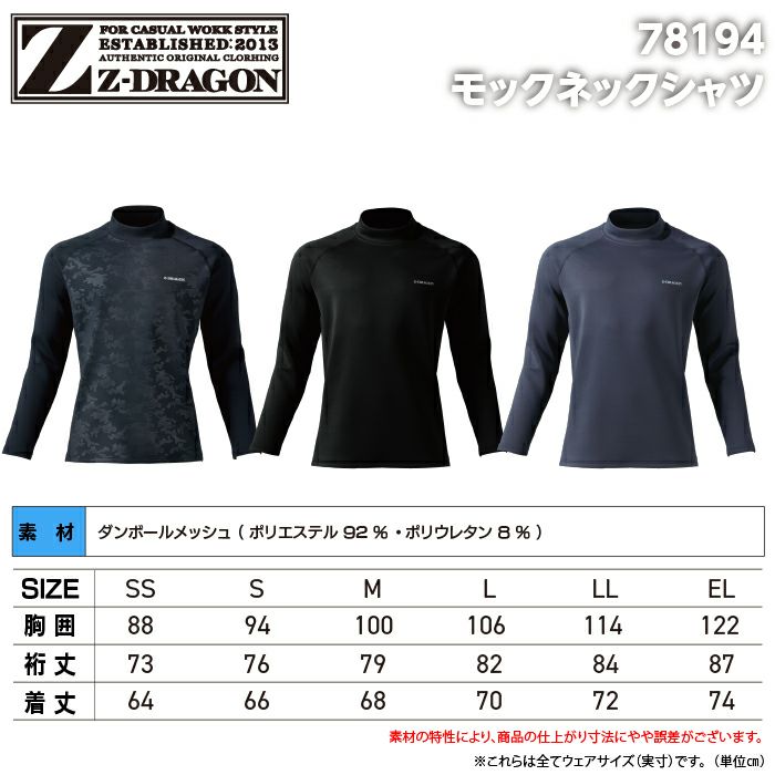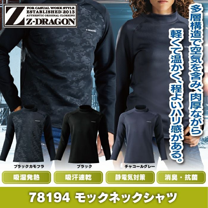 自重堂 作業服 作業着 自重堂 Z-DRAGON ジードラゴン 作業服 インナー 78194 モックネックシャツ SS-LL 秋冬 作業着