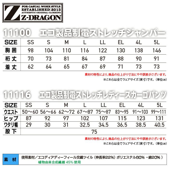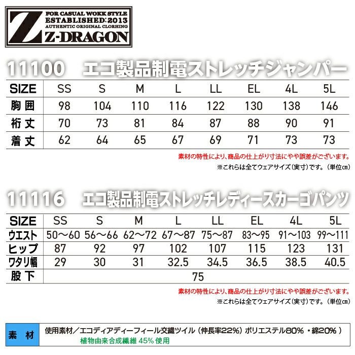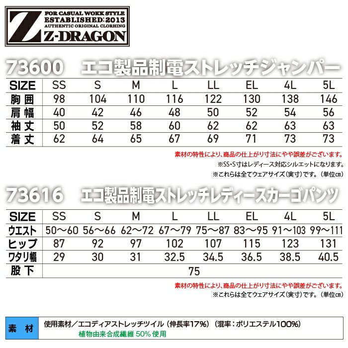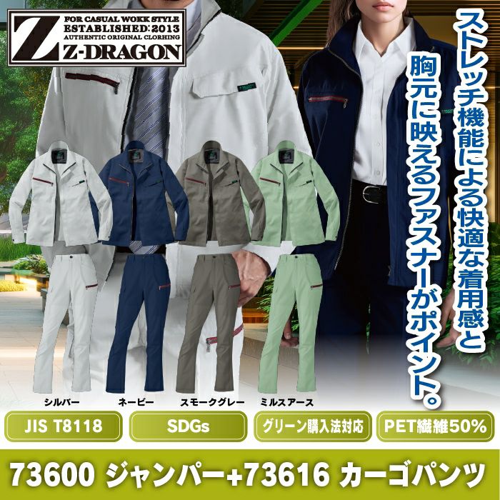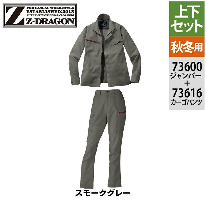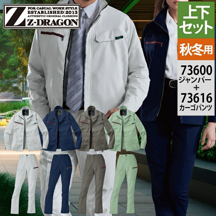 自重堂 作業服 作業着 自重堂 Z-DRAGON ジードラゴン 作業服 上下セット 73600 エコ製品制電ストレッチジャンパー と 73616 レディースカーゴパンツ 秋冬 作業着