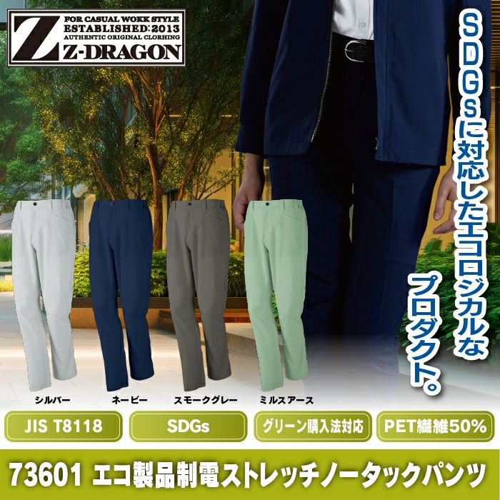 自重堂 作業服 作業着 自重堂 Z-DRAGON ジードラゴン 作業服 73601 エコ製品制電ストレッチノータックパンツ SS-LL 秋冬 作業着