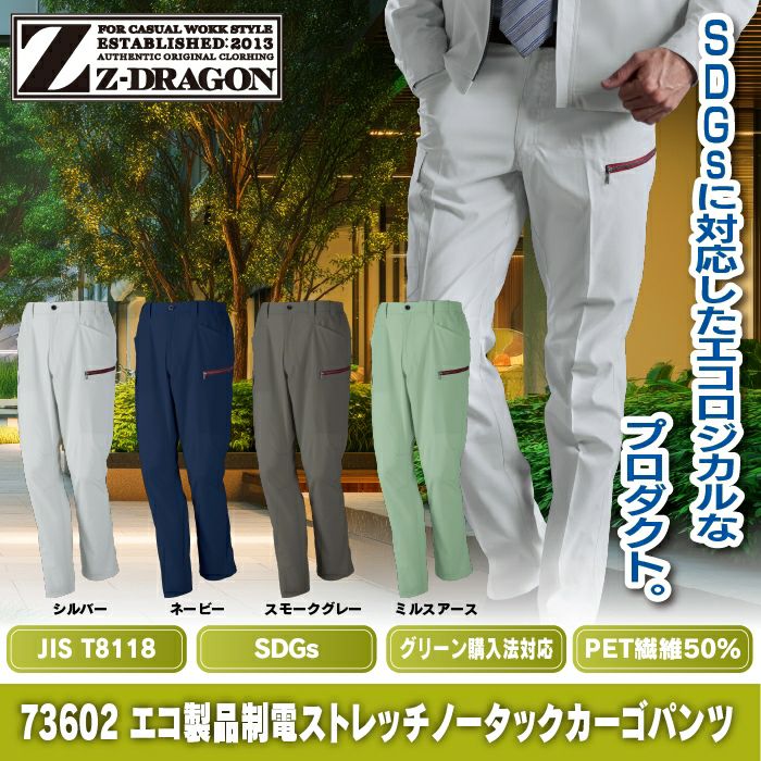 自重堂 作業服 作業着 自重堂 Z-DRAGON ジードラゴン 作業服 73602 エコ製品制電ストレッチノータックカーゴパンツ EL 秋冬 作業着