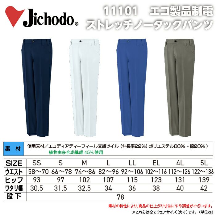 自重堂 作業服 作業着 自重堂 作業服 11101 エコ製品制電ストレッチノータックパンツ SS-LL 秋冬 作業着