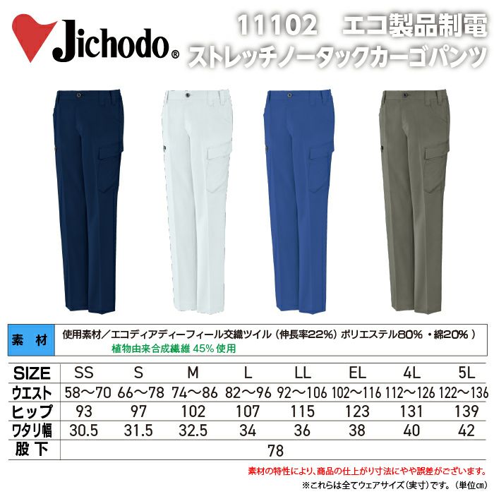 自重堂 作業服 作業着 自重堂 作業服 11102 エコ製品制電ストレッチノータックカーゴパンツ SS-LL 秋冬 作業着