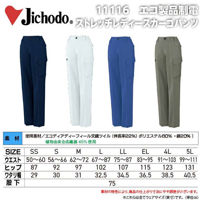 自重堂 作業服 作業着 自重堂 作業服 11116 エコ製品制電ストレッチレディースカーゴパンツ EL 秋冬 作業着