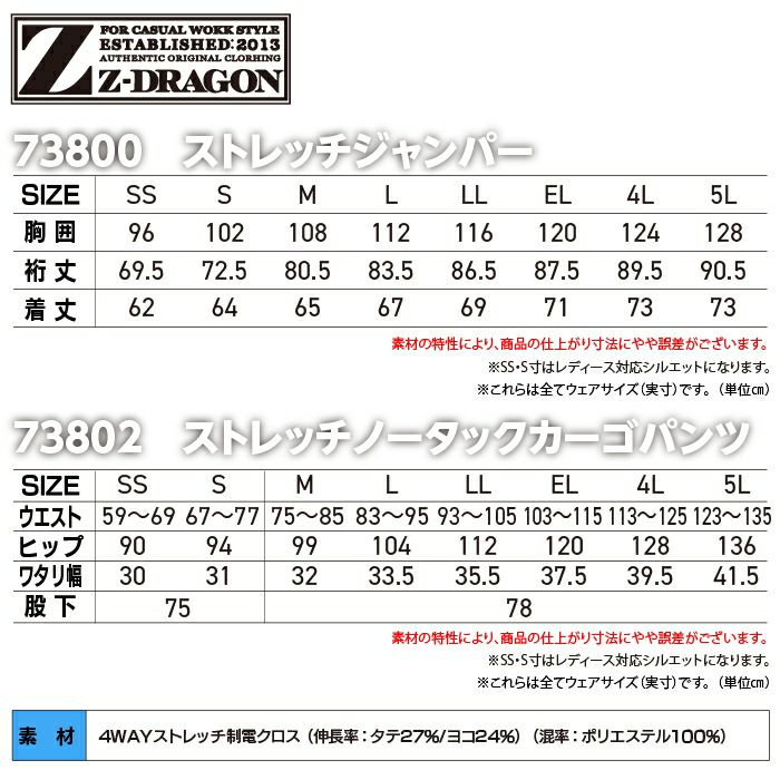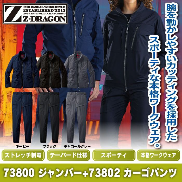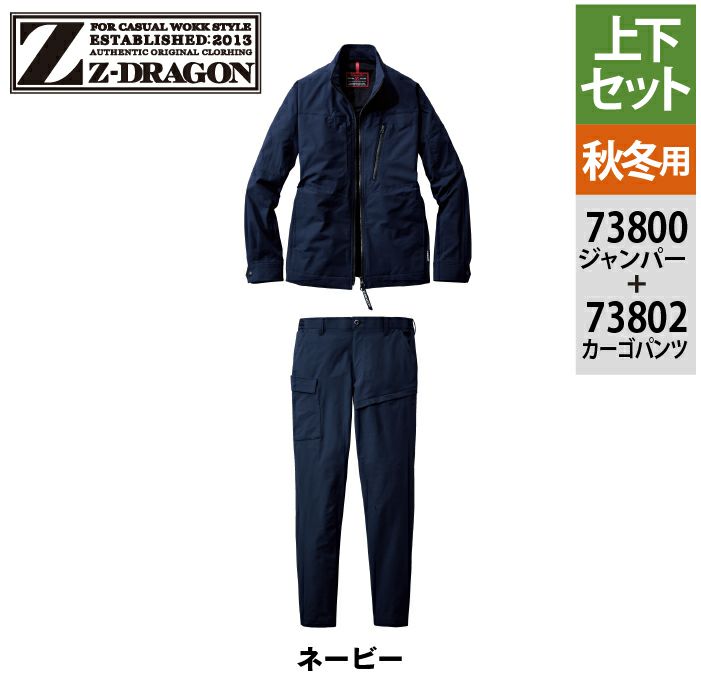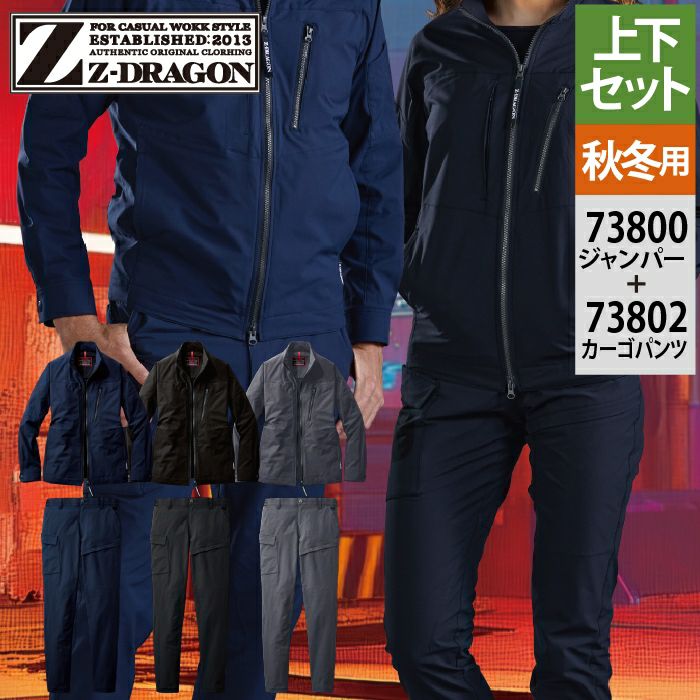 自重堂 作業服 作業着 自重堂 Z-DRAGON ジードラゴン 作業服 上下セット 73800 ストレッチジャンパー と 73802 ノータックカーゴパンツ 秋冬 作業着 作業ズボン