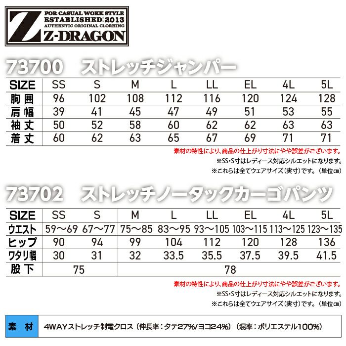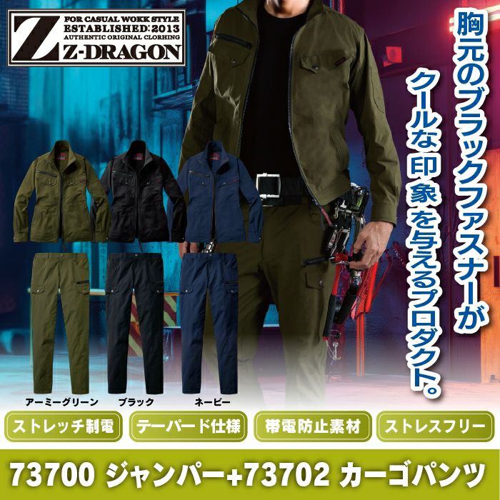 自重堂 作業服 作業着 自重堂 Z-DRAGON ジードラゴン 作業服 上下セット 73700 ストレッチジャンパー と 73702 ノータックカーゴパンツ 秋冬 作業着 作業ズボン