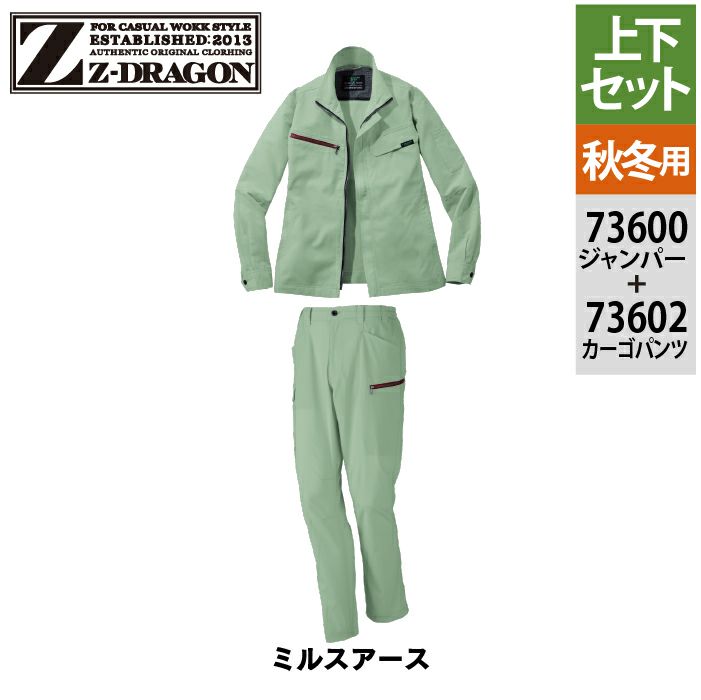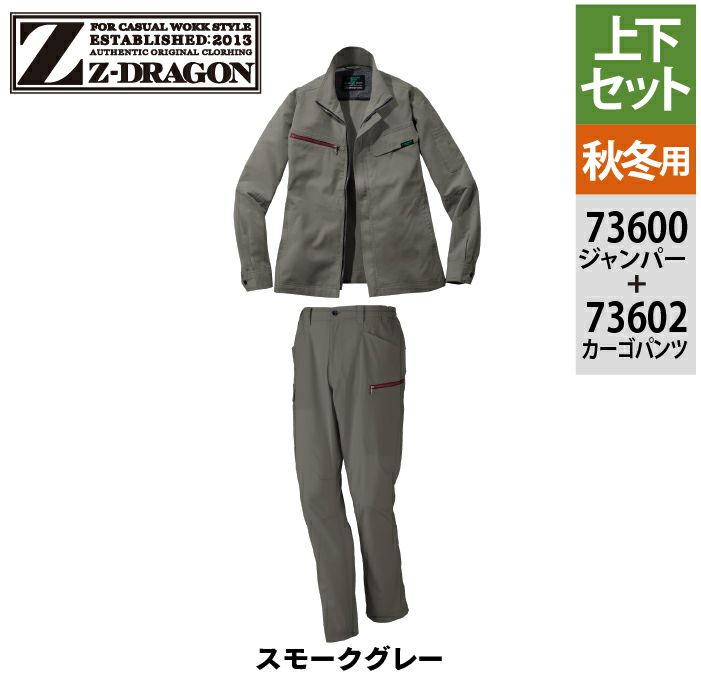 自重堂 作業服 作業着 自重堂 Z-DRAGON ジードラゴン 作業服 上下セット 73600 エコ製品制電ストレッチジャンパー と 73602 ノータックカーゴパンツ 秋冬 作業着