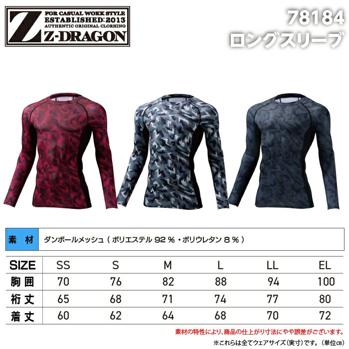 自重堂 Z-DRAGON ジードラゴン 作業服 インナー 78184 ロングスリーブ SS-LL 秋冬 作業着