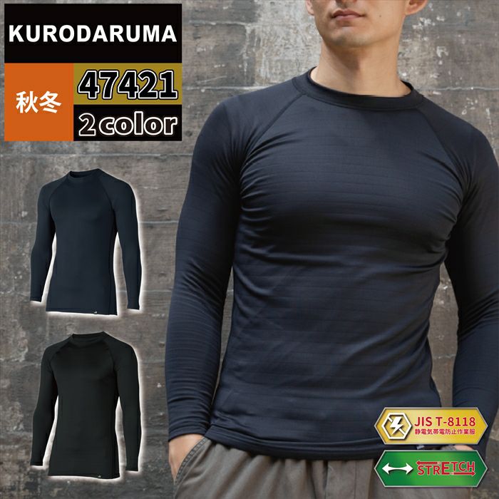 作業服 作業着 インナー クロダルマ 作業服 インナー 47421 長袖アンダーレイヤー S-LL 秋冬 作業着 保温 制電 ドライ