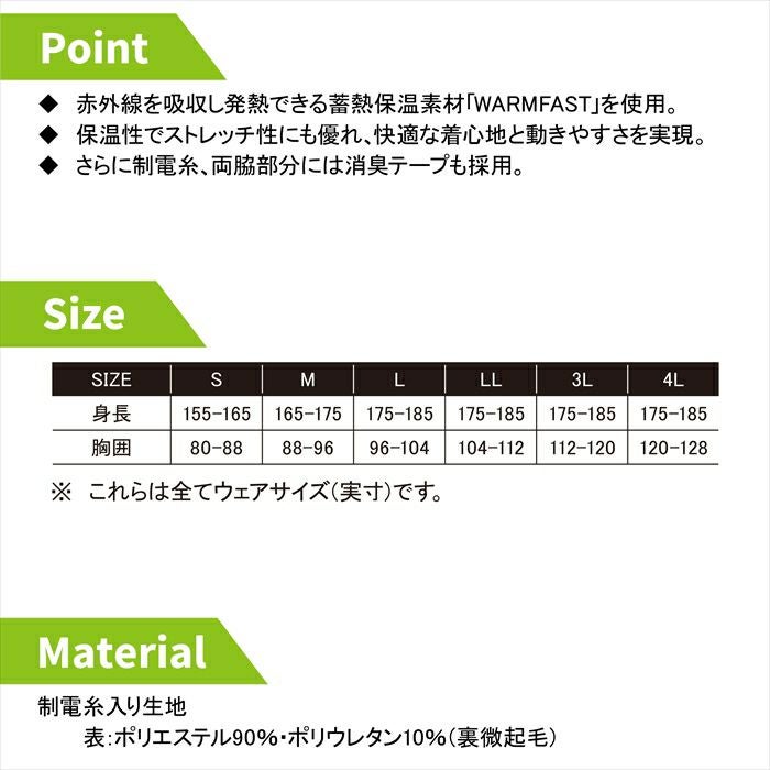 クロダルマ 作業服 インナー 47421 長袖アンダーレイヤー S-LL 秋冬 作業着 保温 制電 ドライ