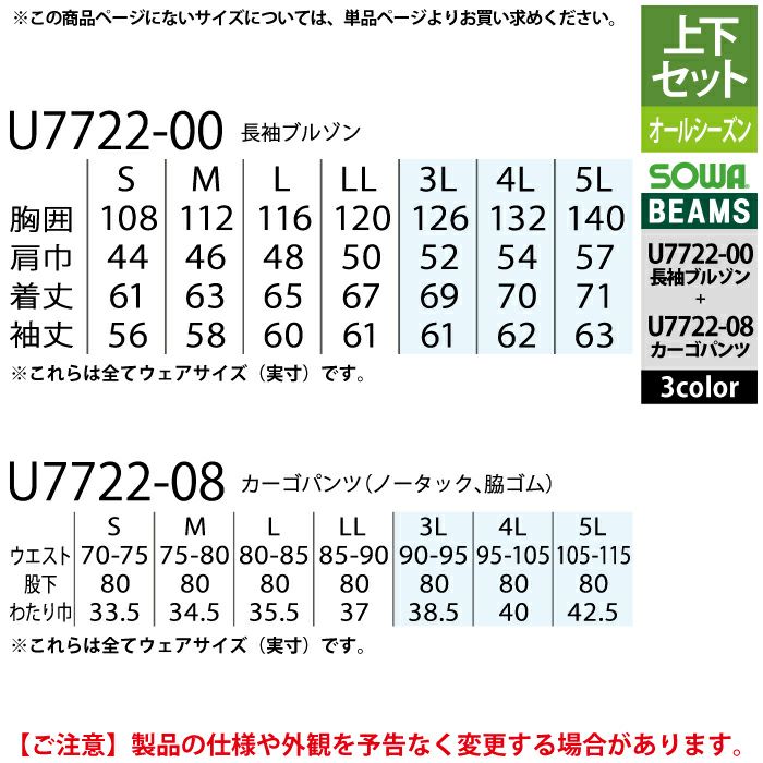 U7722-00上着サイズ