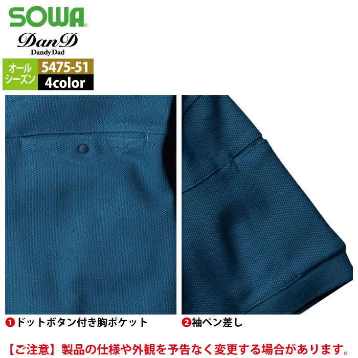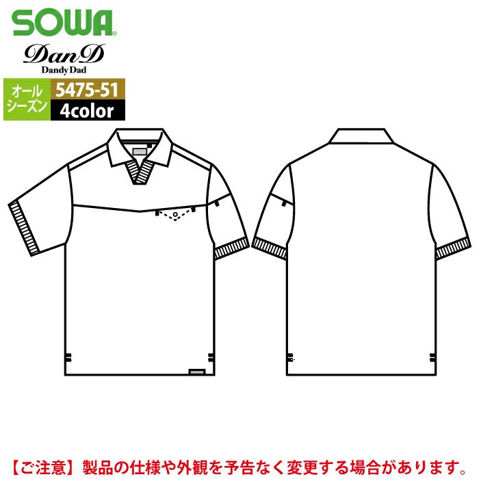 桑和 SOWA 作業服 5475-51 半袖ポロシャツ S-3L オールシーズン 作業着 ソーワ ワークウェア