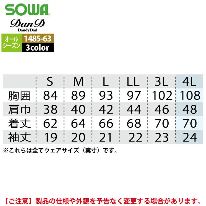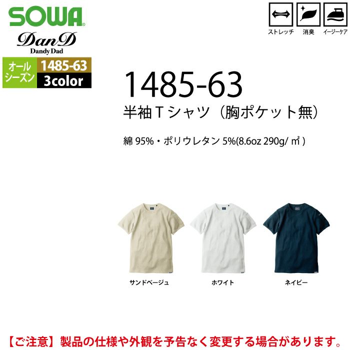 桑和 SOWA 作業服 1485-63 半袖Tシャツ S-3L オールシーズン 作業着 ソーワ ワークウェア