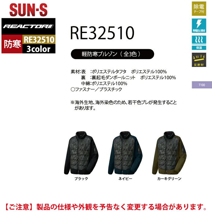 サンエス 作業服 防寒着 RE32510 軽防寒ブルゾン S-LL ユニセックス 秋冬 作業着 おしゃれ