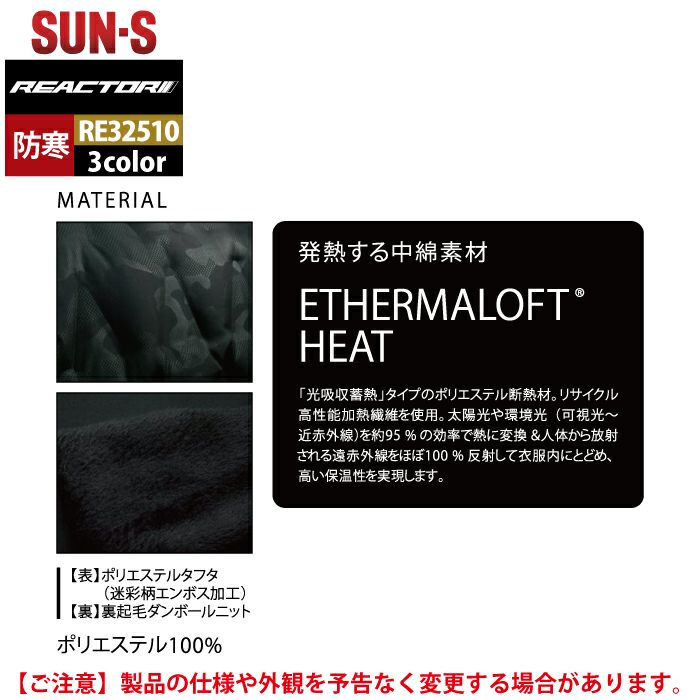 ◇光発熱で保温性に優れた中綿を使用した軽防寒ブルゾンが新たに登場