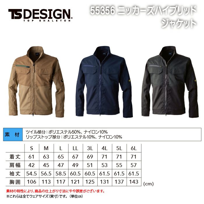 TSDESIGN 作業服 作業着 藤和 TSDESIGN 作業服 55356 ニッカーズハイブリッドジャケット 3L-4L 秋冬 作業着