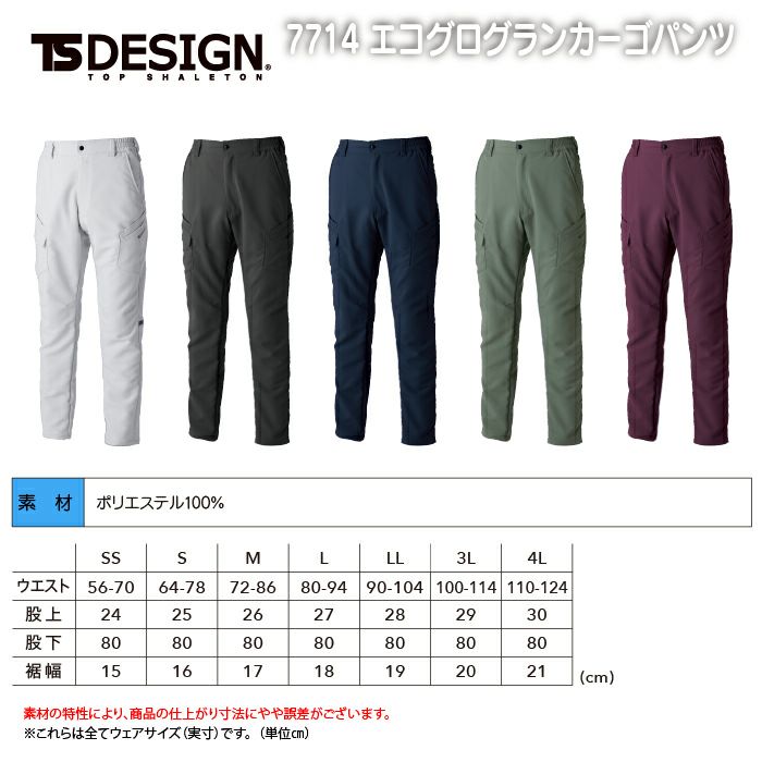 TSDESIGN 作業服 作業着 藤和 TSDESIGN 作業服 作業ズボン 7714 エコグログランカーゴパンツ SS-LL 秋冬 作業着