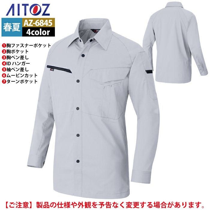 作業服 作業着 アイトス Aitoz 作業服 AZ-6845 長袖シャツ SS-LL 春夏用