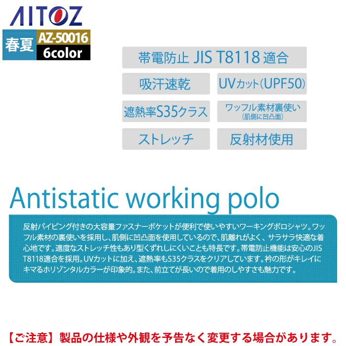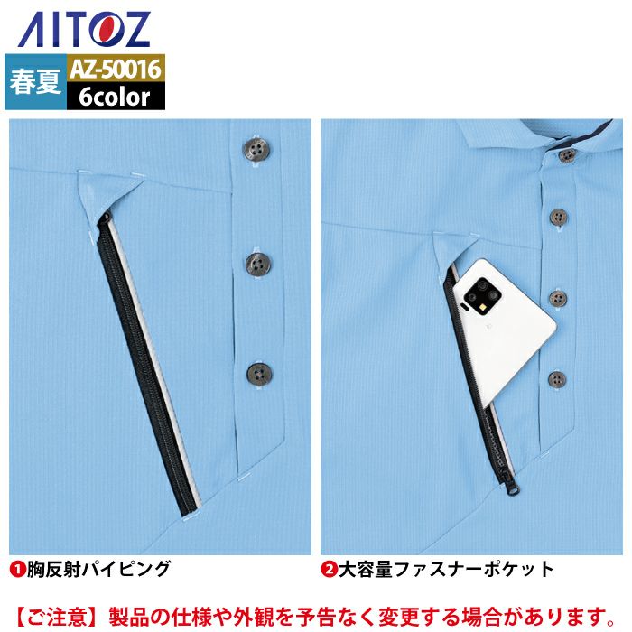作業服 作業着 アイトス Aitoz 作業服 AZ-50016 半袖ポロシャツ SS-LL オールシーズン