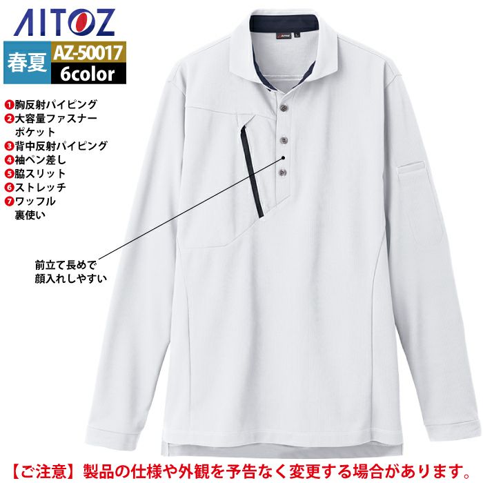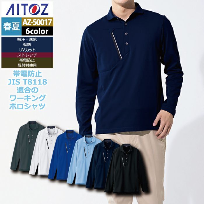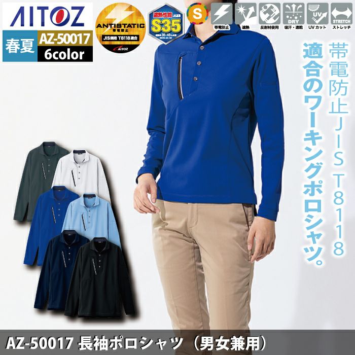 作業服 作業着 アイトス Aitoz 作業服 AZ-50017 長袖ポロシャツ SS-LL オールシーズン